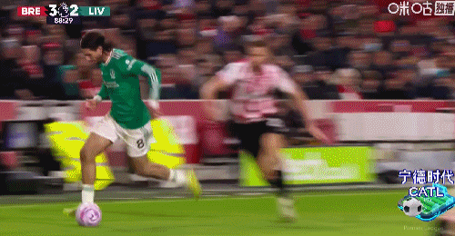 第88分钟,萨拉赫左脚停球右脚抽射破门,利物浦2-3布伦特福德