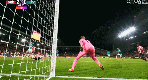 第5分钟,手榴弹战术,瓦塔拉半凌空倒钩破门,布伦特福德1-0利物浦